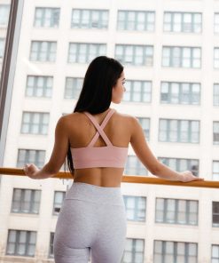 Our cult favorite active fabric! Made with recycled poly interlock that is lighter than air making it breathable, but still very stretchy. It has a very subtle shine on the surface.