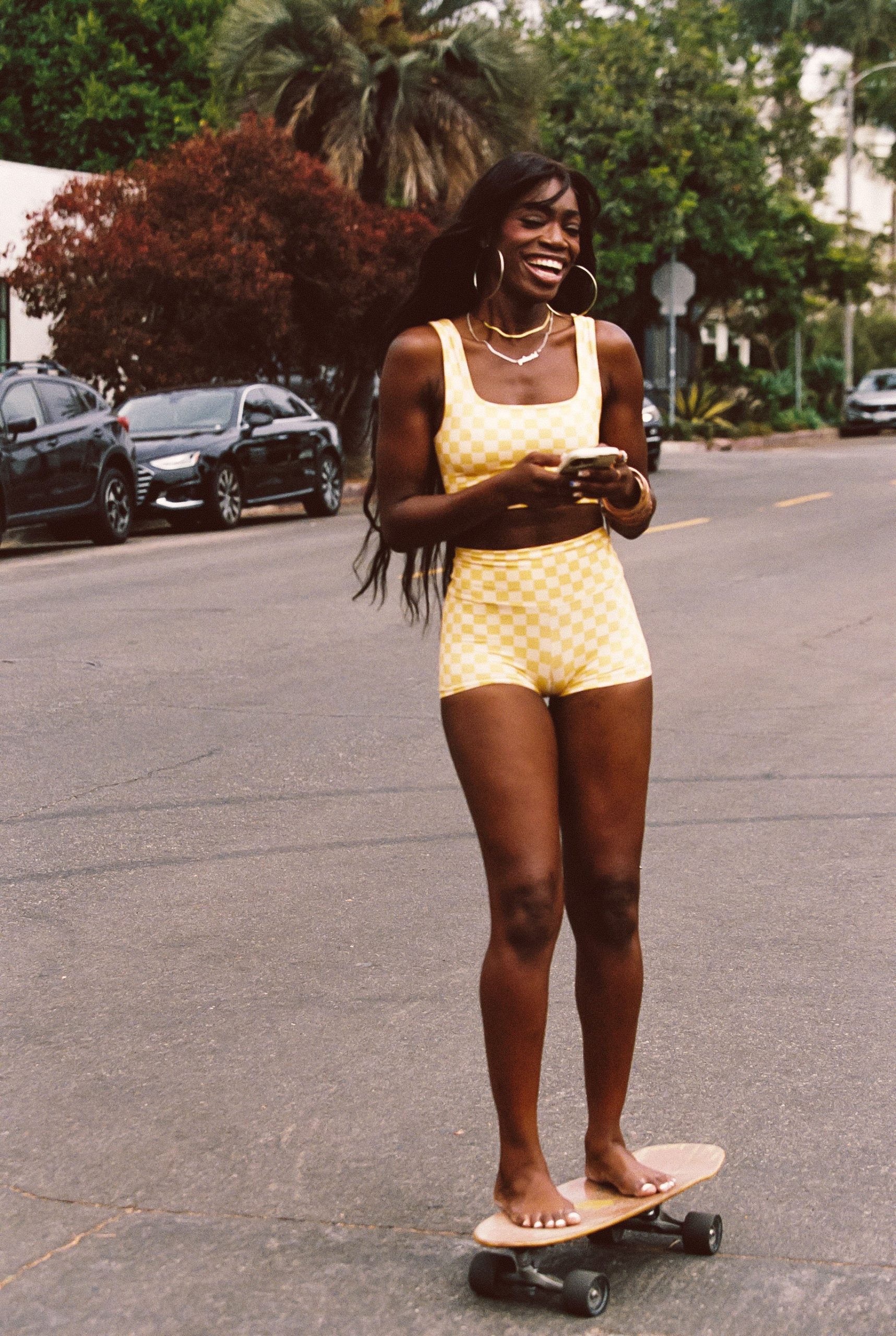 Too hot for leggings? No problem! The Cece Booty Short stays up and holds you in place with light compression and 4-way stretch. Cece’s ultra-short length keeps you cool from start to finish!