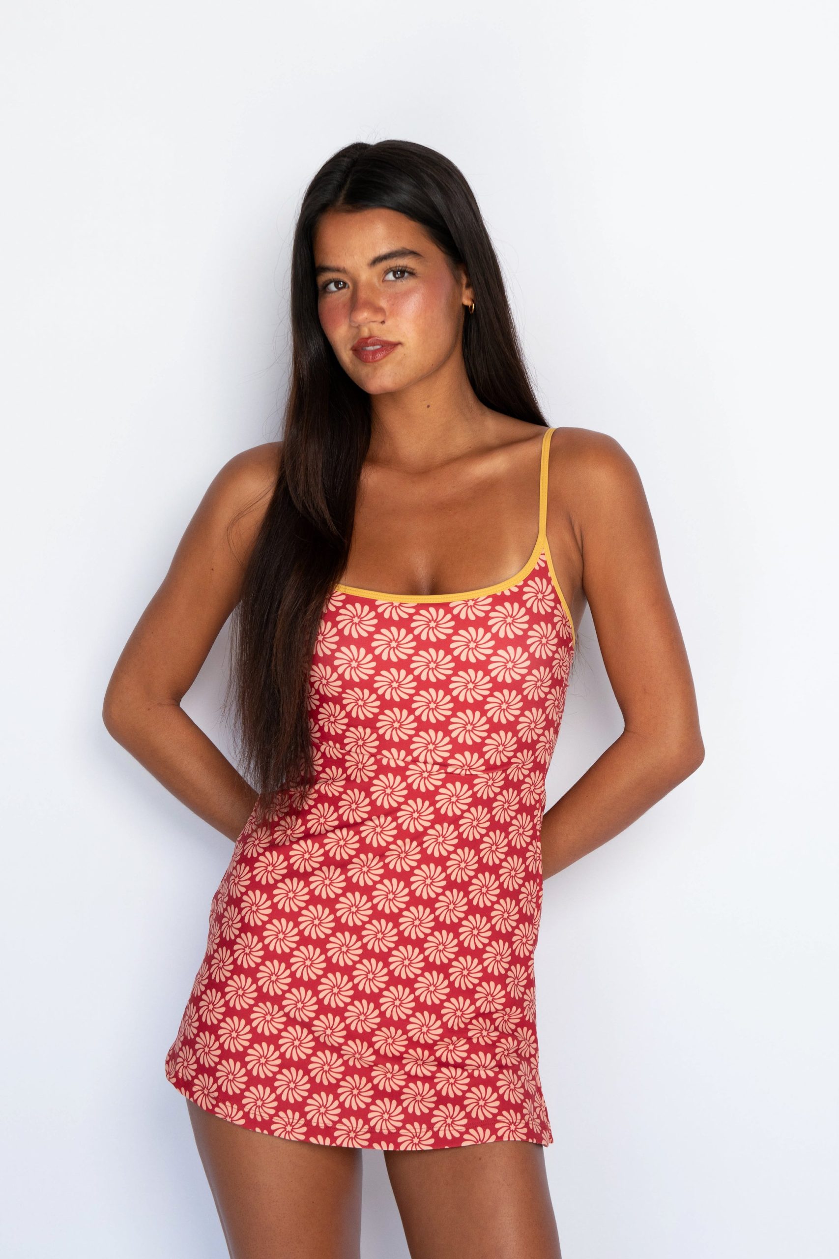 Juno is a timeless tennis dress featuring adjustable spaghetti straps and built-in shorts. Its clean, mini-length silhouette effortlessly blends fashion and function, so you can move seamlessly from on-court play to off-court style feeling chic as ever.