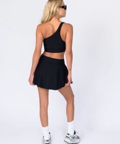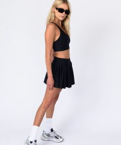 A pleated mini tennis skirt with our Skatie twist! We kept the back simple and chic so it lays nice and flat. Her inside includes bike shorts so you can play as hard as you want, but still look chic. Pair with any of our sports bras for an off-duty look or one of our basics topics as a cute outfit.