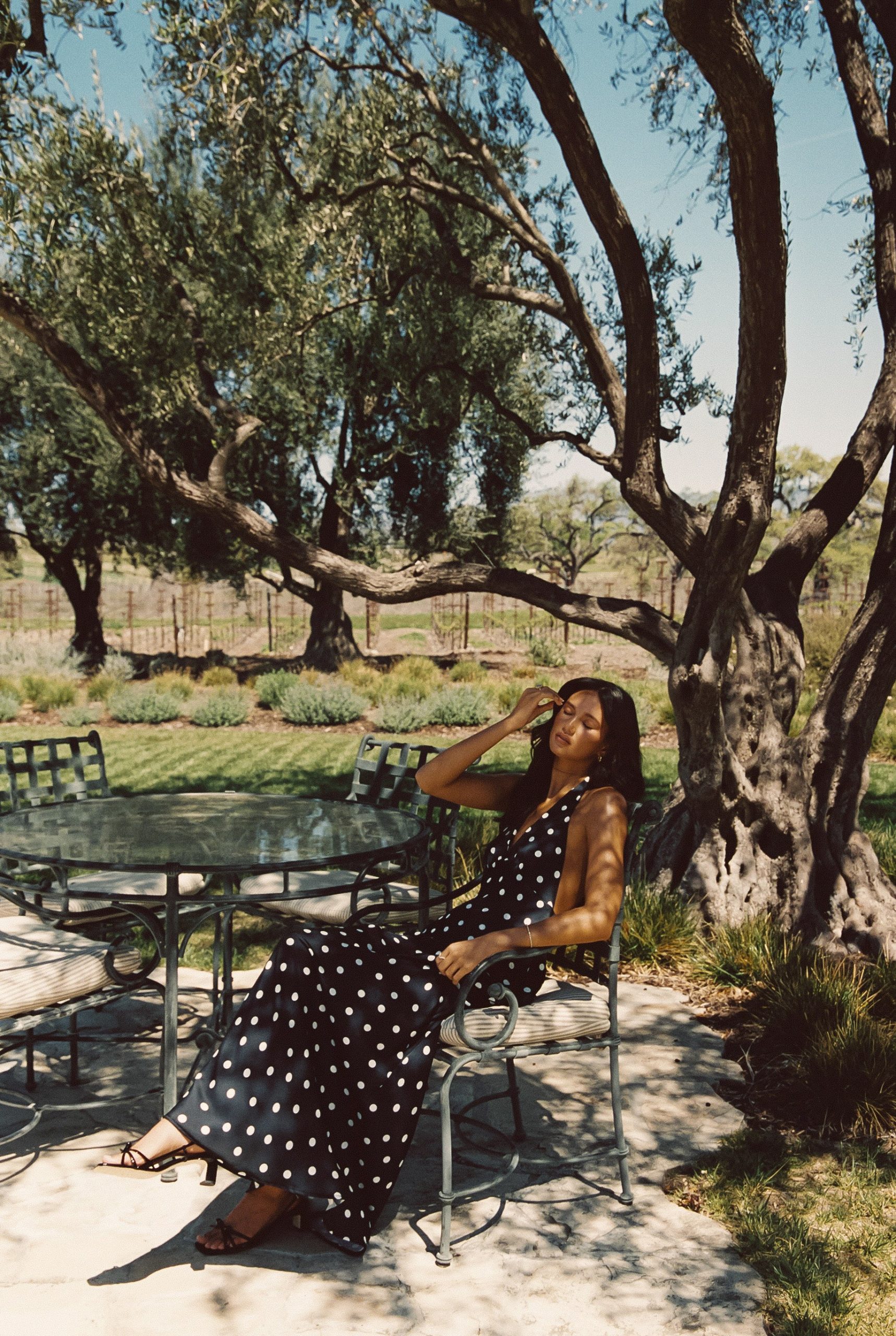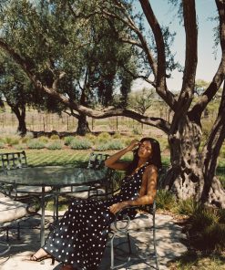 Goldie is a timeless maxi dress with a vintage shape, adjustable halter neck, and an open back. It’s on the bias which means it will hug your curves without feeling fitted.
