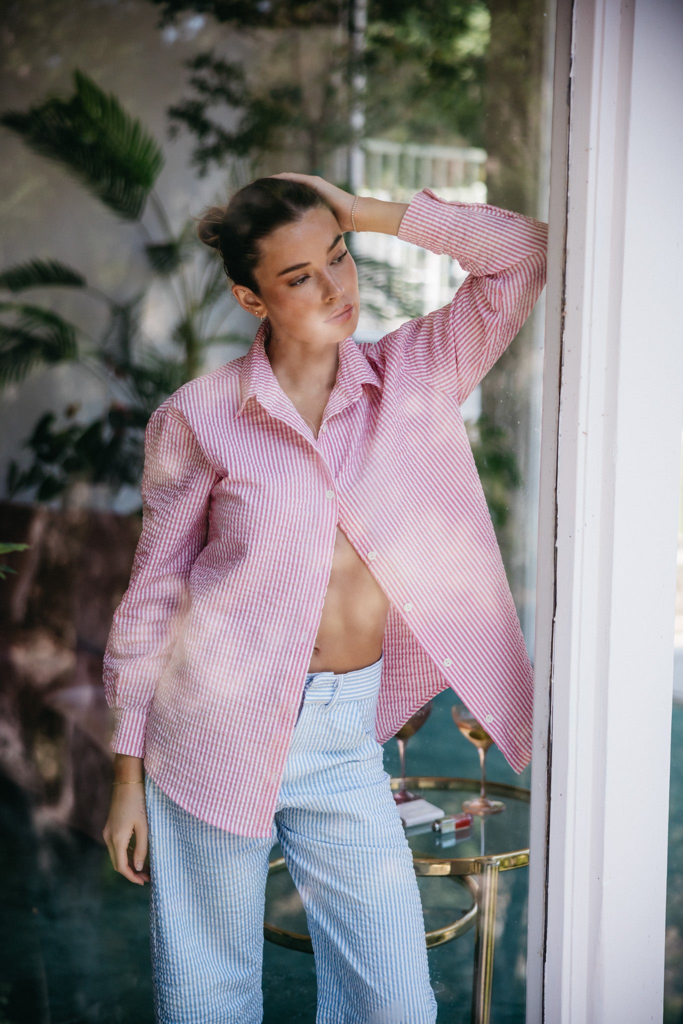 Harper is the perfect menswear-inspired shirt that’s long enough to be worn alone but pairs perfectly with our Brooks pants for a super chic set.