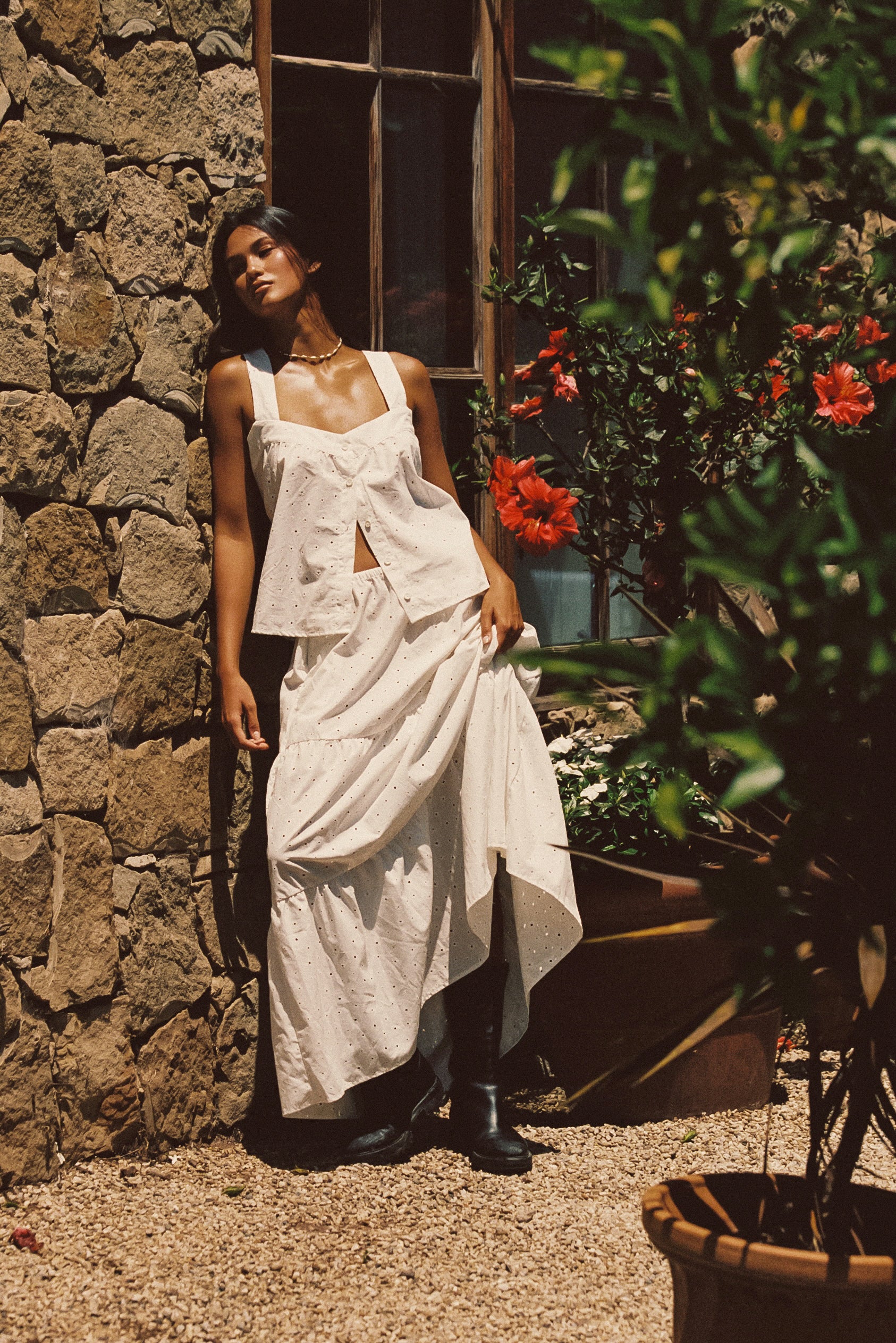 Kristina is super light and breezy. She’s the perfect skirt to throw on with any of our basic tops for warm beach days or summer nights. We gave her an adjustable waistband so you can wear her low or high on your waist.