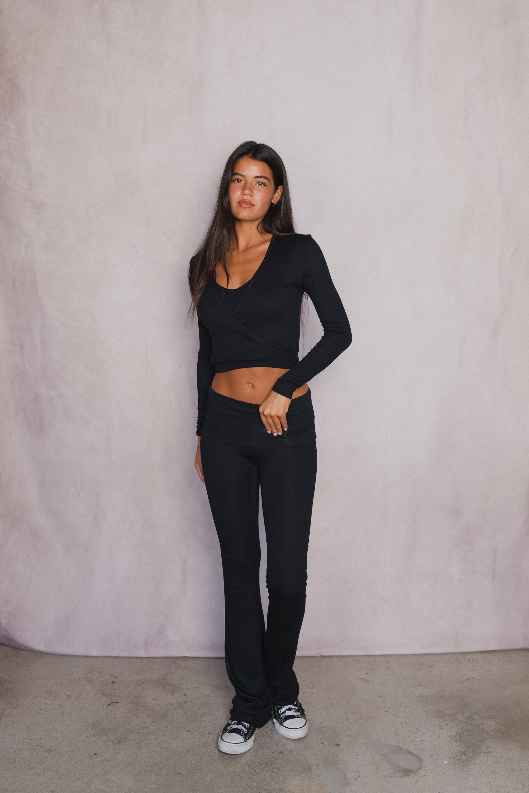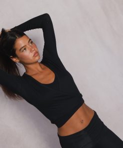 Inspired by a classic ballet wrap top, this ribbed long sleeve cardigan is kind of like a sweater and kind of like a shirt. Wrap it snug or wear it loose and cozy. For a looser fit we recommend you size up.