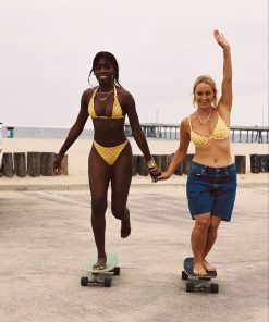 Our OG buttery soft fabric that you guys know and love us for. This interlock recycled poly is the stretchiest swim fabric in the game. It’s a little bit thicker than your average swim material which gives it that luxury high quality feel.