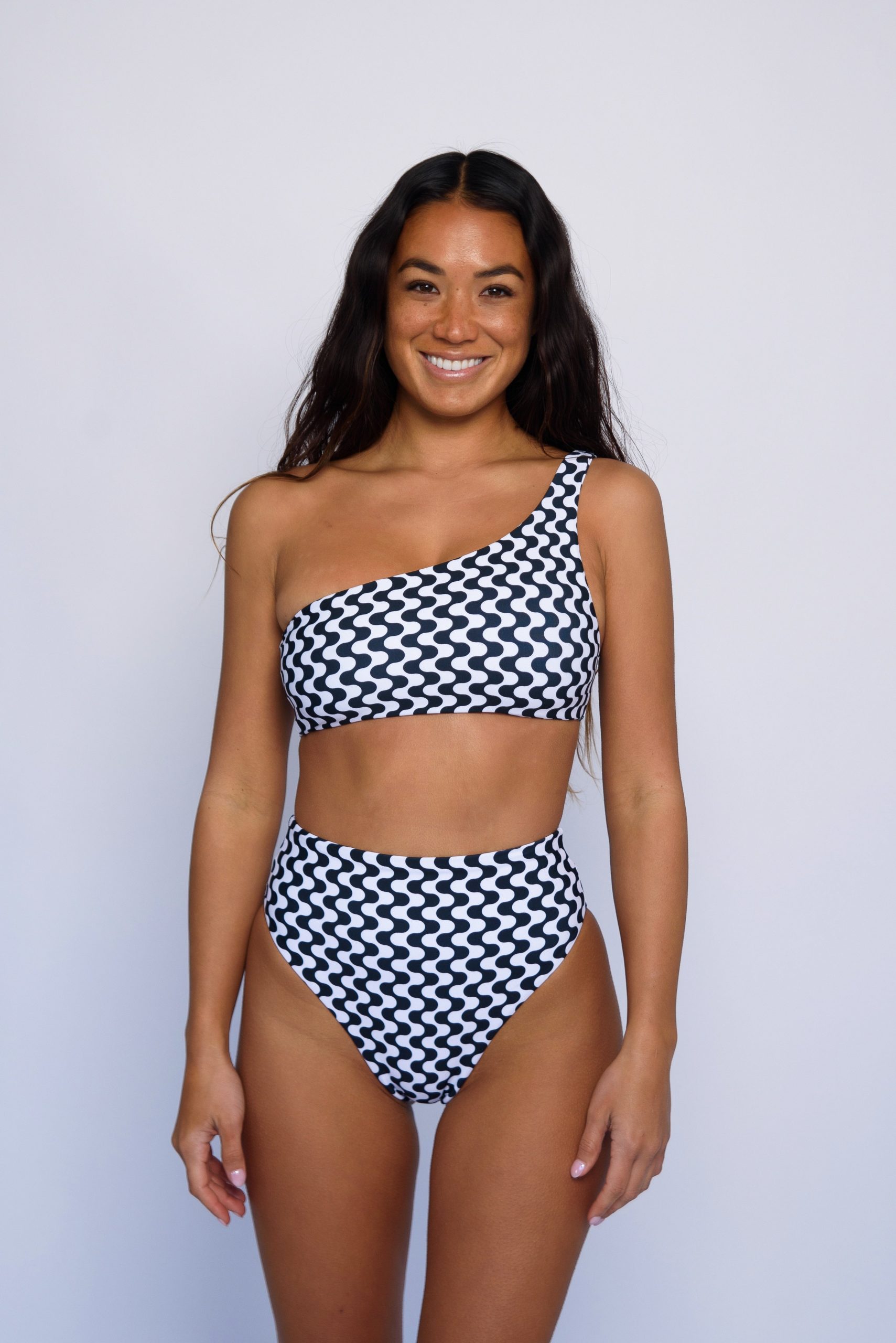 Ellis is super chic yet fun-loving. The one shoulder shape gives an elegant look but the asymmetric back brings life to the party. Ellis holds in “girls” of any size so if you are looking for a bandeau feel with a little extra support, Ellis is your girl.