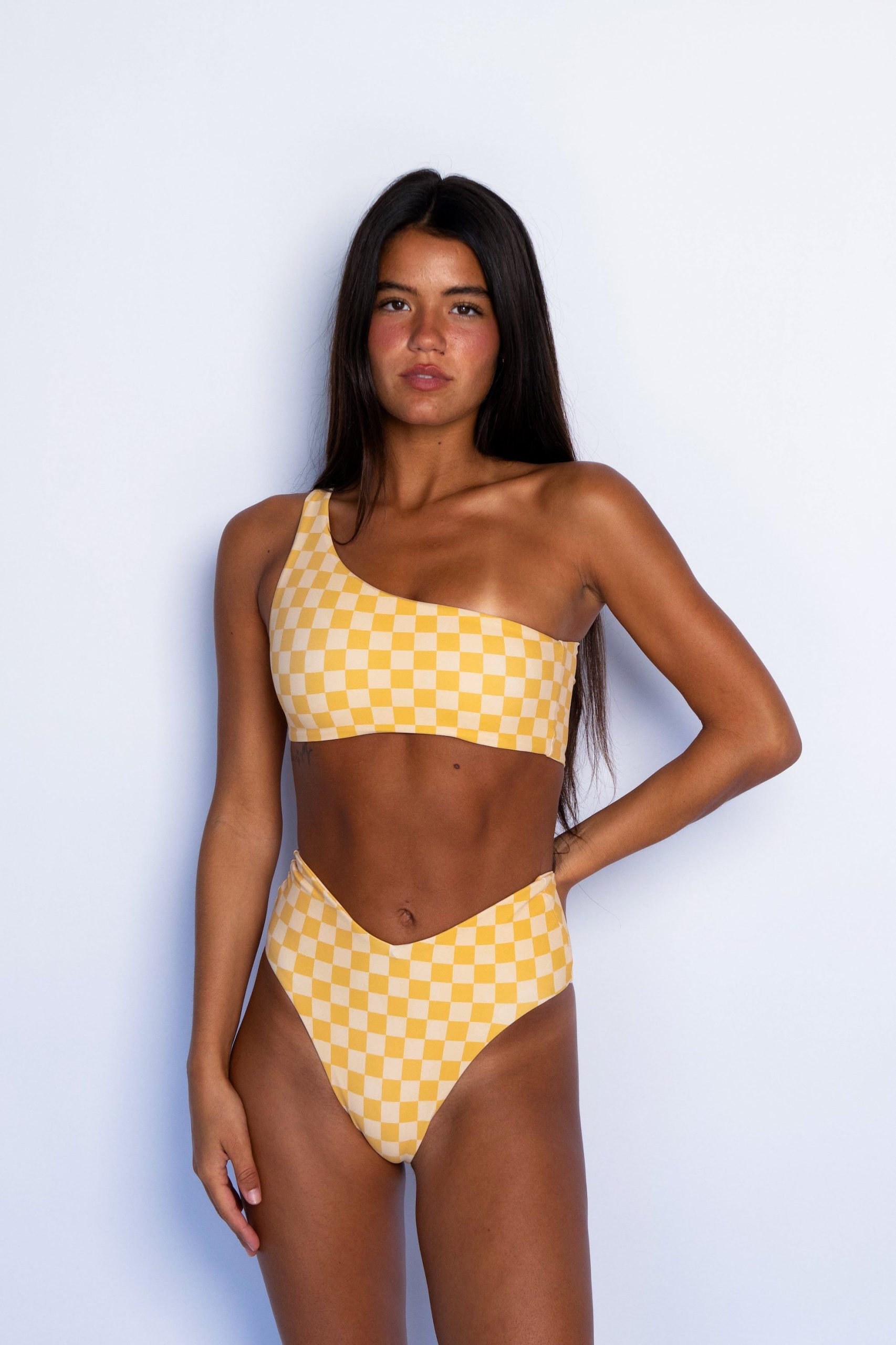 Ellis is super chic yet fun-loving. The one shoulder shape gives an elegant look but the asymmetric back brings life to the party. Ellis holds in “girls” of any size so if you are looking for a bandeau feel with a little extra support, Ellis is your girl.