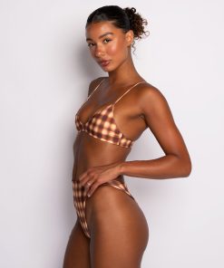 Sizing: Go with band size. Does not tie in the back – cute gold clasp! So if you size up to accommodate bigger boobs it may be too loose.