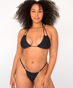 An itty-bitty adjustable string-thin bikini. As always, pinch is not a problem. Neither are tan lines. Harli has tiny side coverage and minimal back coverage, and she can be hiked up for a mid-rise fit or worn low. It’s the new team favorite.