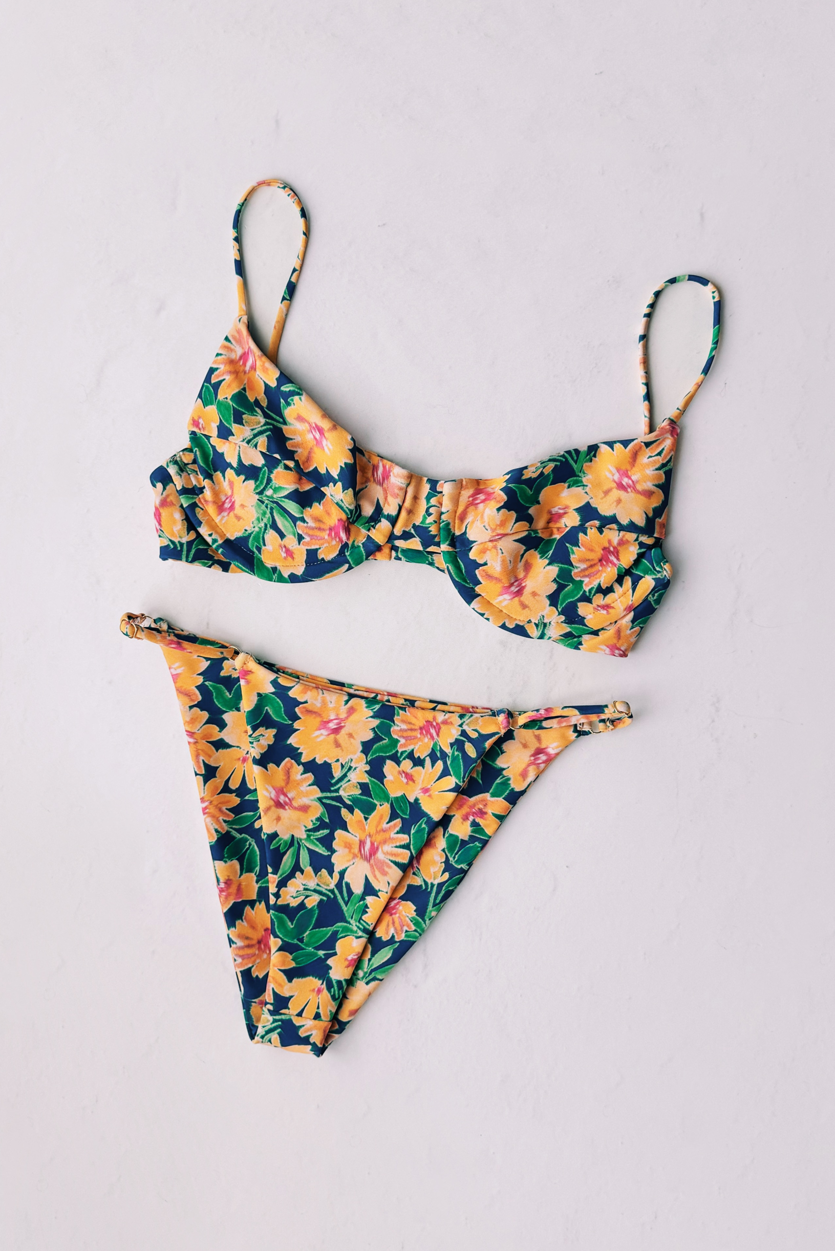 Sizing: Kate has good coverage, so if you want good cleavage, size down. She ties in the back for a customizable band fit.