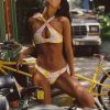 Sizing: Kate has good coverage, so if you want good cleavage, size down. She ties in the back for a customizable band fit.
