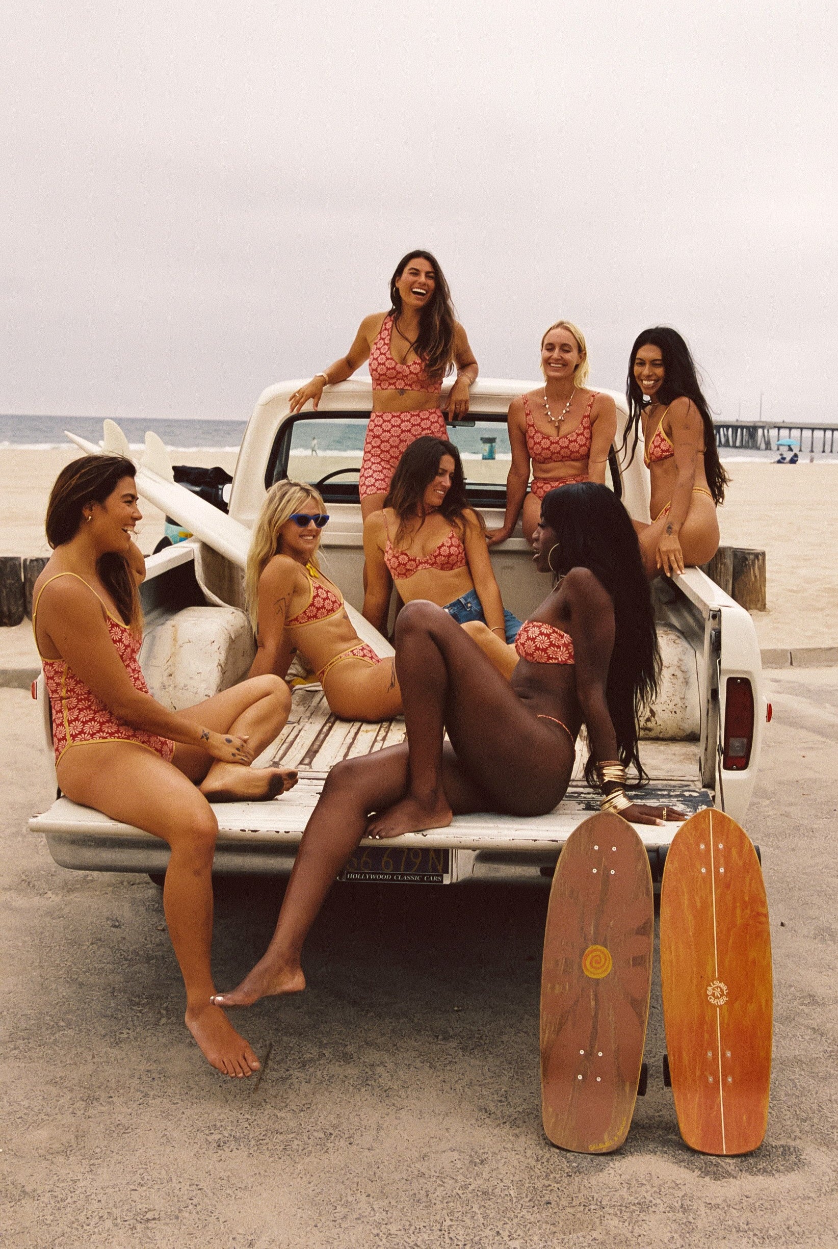 Our OG buttery soft fabric that you guys know and love us for. This interlock recycled poly is the stretchiest swim fabric in the game. It’s a little bit thicker than your average swim material which gives it that luxury high quality feel.