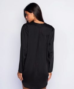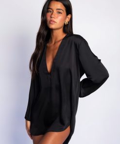 Growing up in the Midwest I always saw the cutest little printed tunics whenever we vacationed anywhere. This is our take on that preppy throw on style. Short enough to wear as a top, but long enough to be a micro-mini dress. She’s floaty without being oversized + the v front is a sexier vibe.