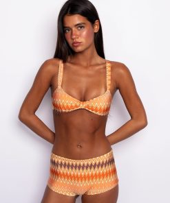 The Lottie Top features adjustable shoulder straps with a fixed bust band and a skimpier cut reminiscent of the Gisele Top, offering a sleek and minimal fit.