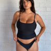 Our OG buttery soft fabric that you guys know and love us for. This interlock recycled poly is the stretchiest swim fabric in the game. It’s a little bit thicker than your average swim material which gives it that luxury high quality feel.