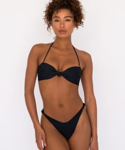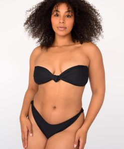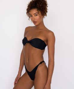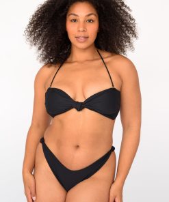 Lyndi is a knotted bandeau with removable halter straps. This top has structured sides that keep her in place, but her skimpy coverage makes her perfect for tanning! She’s got removable padding that allows the top to hold better shape.