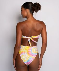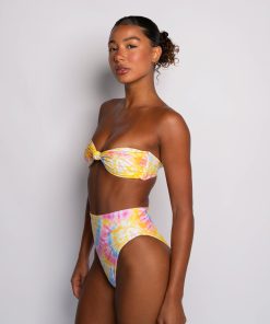 Lyndi is a knotted bandeau with removable halter straps. This top has structured sides that keep her in place, but her skimpy coverage makes her perfect for tanning! She’s got removable padding that allows the top to hold better shape.
