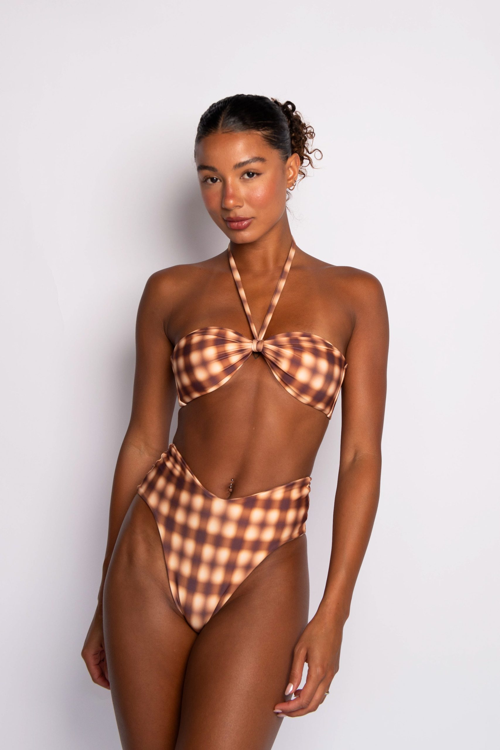 Our OG buttery soft fabric that you guys know and love us for. This interlock recycled poly is the stretchiest swim fabric in the game. It’s a little bit thicker than your average swim material which gives it that luxury high quality feel.
