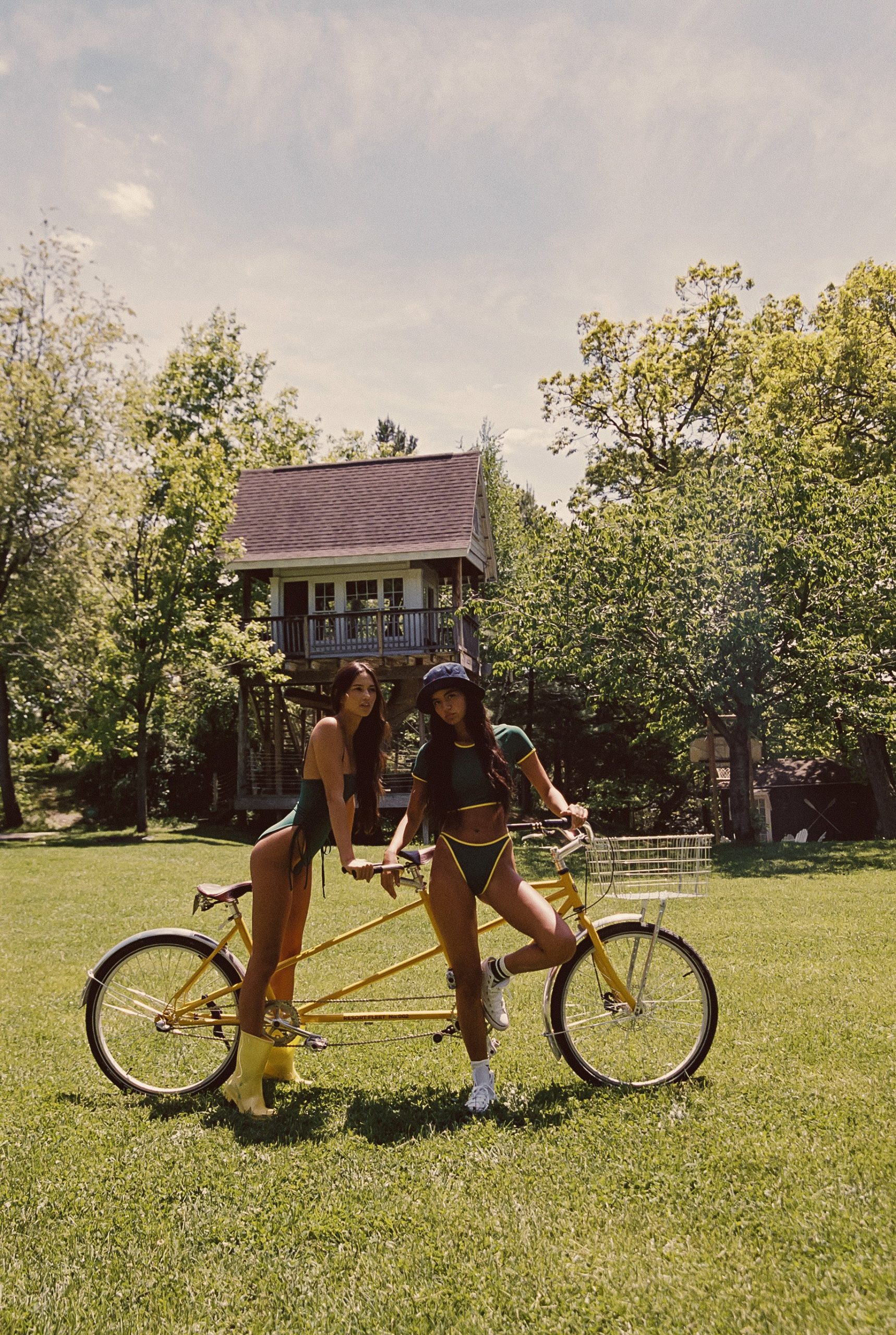 Our OG buttery soft fabric that you guys know and love us for. This interlock recycled poly is the stretchiest swim fabric in the game. It’s a little bit thicker than your average swim material which gives it that luxury high quality feel.