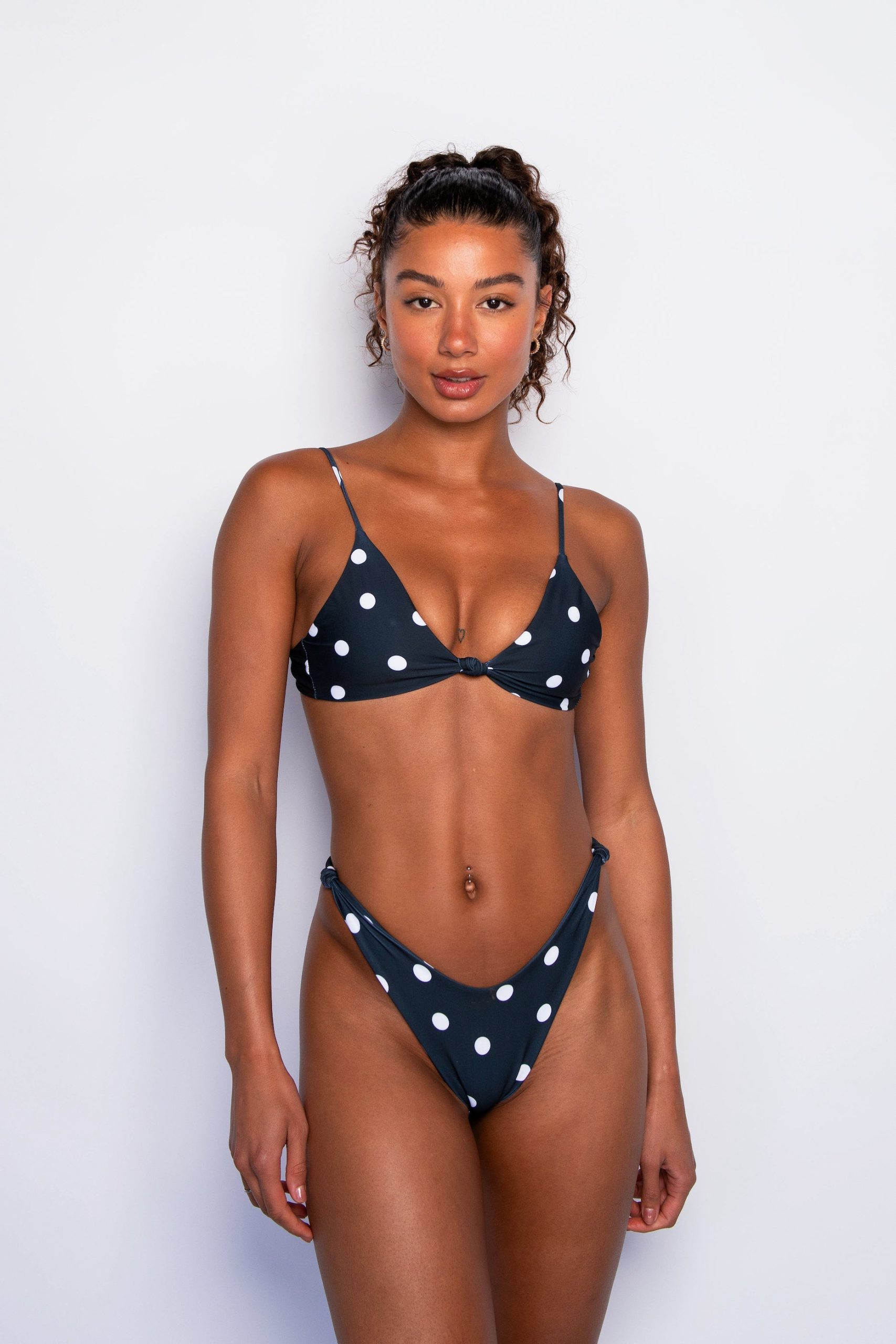Fans of Mandi will love Suzanne: a knot-sided twist on a classic. Her high leg makes yours look miles long, and her cheeky coverage is a fan-favorite!