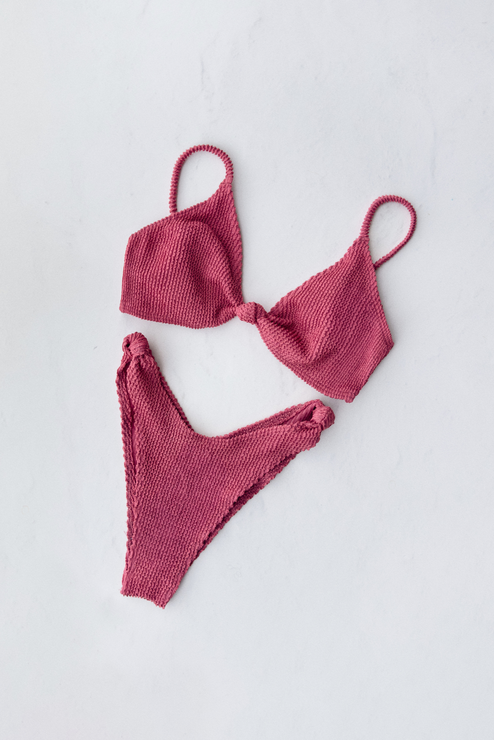 Crinkle is one of our most popular swim fabrics, and it’s exactly how it sounds – crinkled! It’s light and stretchy so super flattering on all body types. It fits a little differently than our traditional swim fabric – a tad bit stretchier in different places, so try sizing down if you are between sizes. Crinkle styles are single lined.