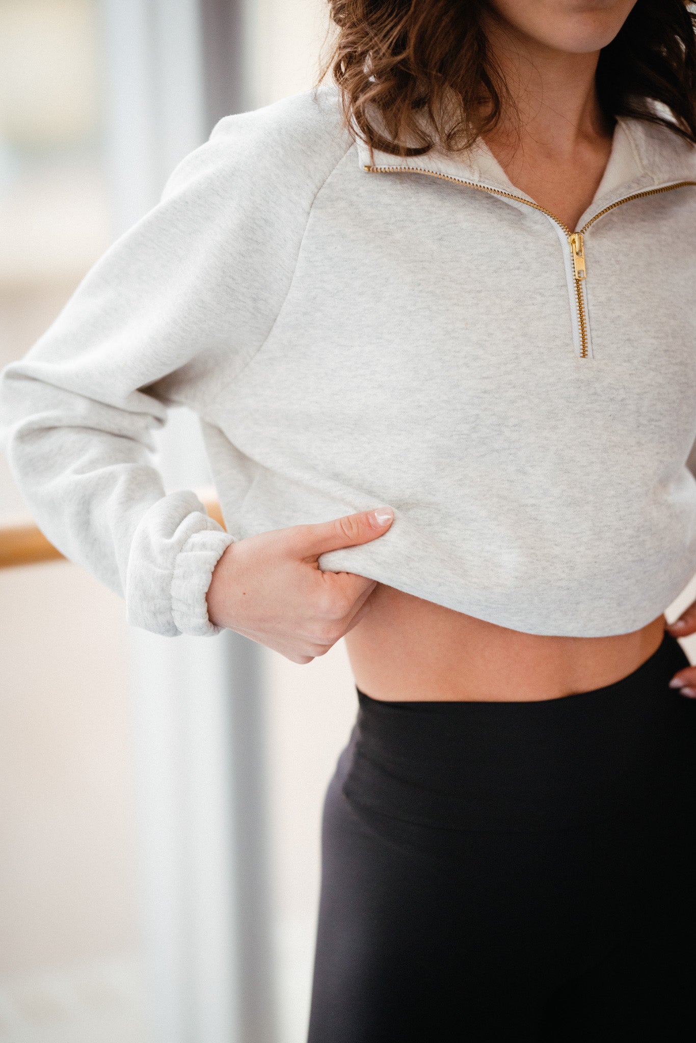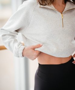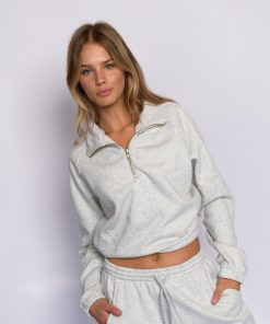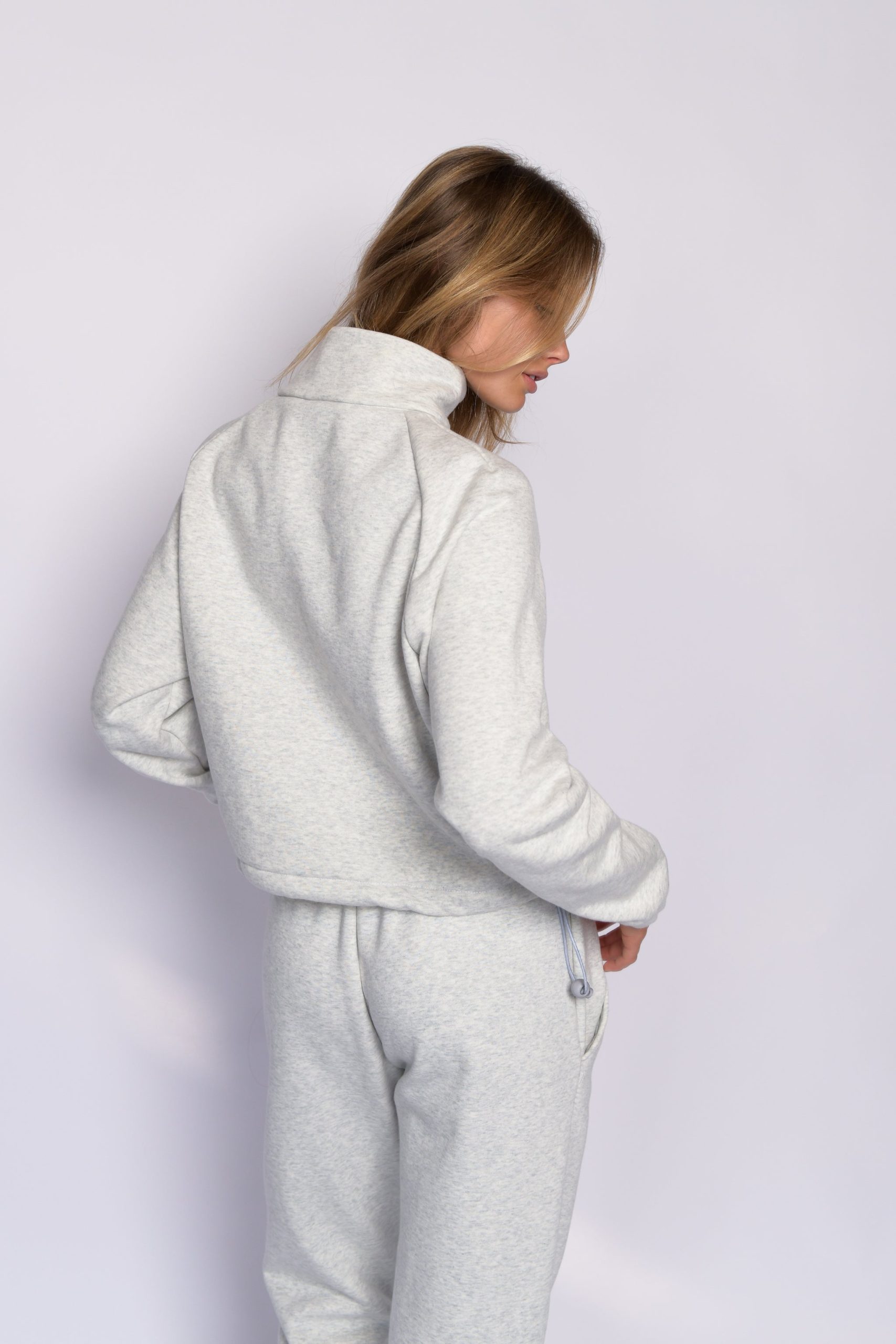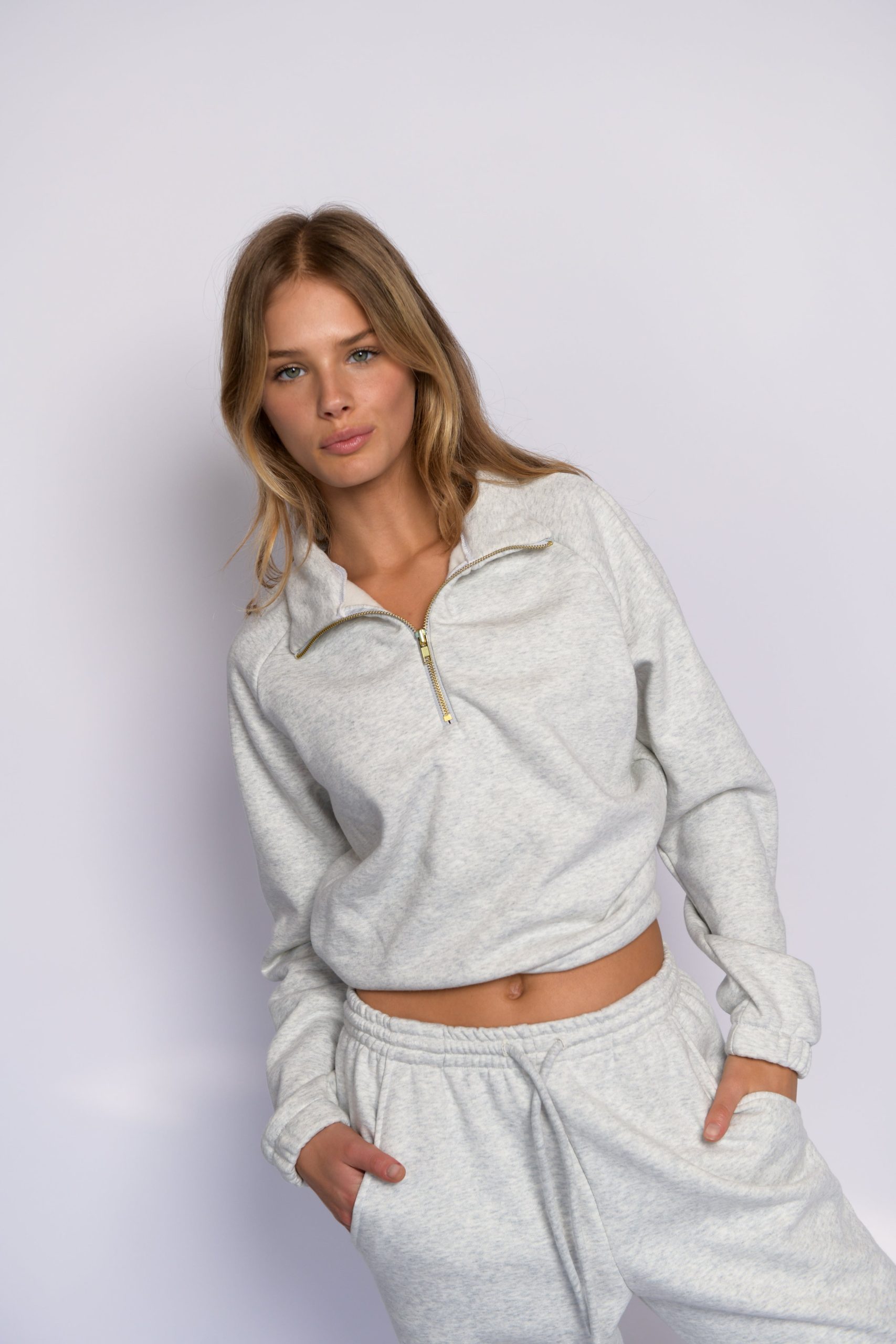 This cropped length quarter zip has an elastic adjustable waist so you can cinch her tight or wear her loose for a longer line. Made from our sustainable fleece, she’s soft as butter but warm enough for cold winter nights, even in Skatie’s hometown Chicago.